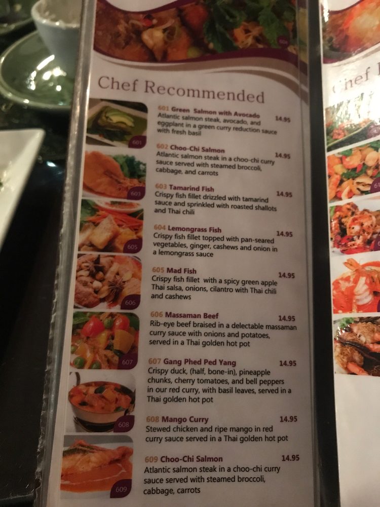 Crispy fish fillet with a spicy green apple Thai salsa, onions, cilantro with Thai chili and cashews.
