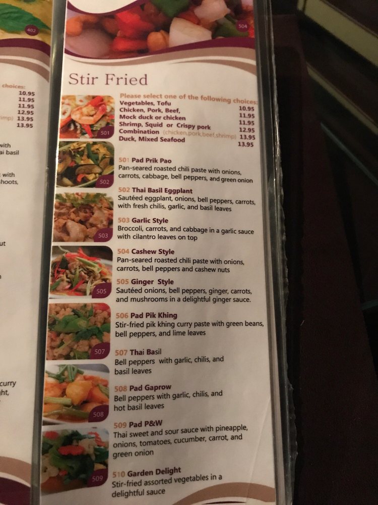 Curry cooked in a spicy clear broth with chili, Thai herbs, mixed vegetables, and Thai basil.