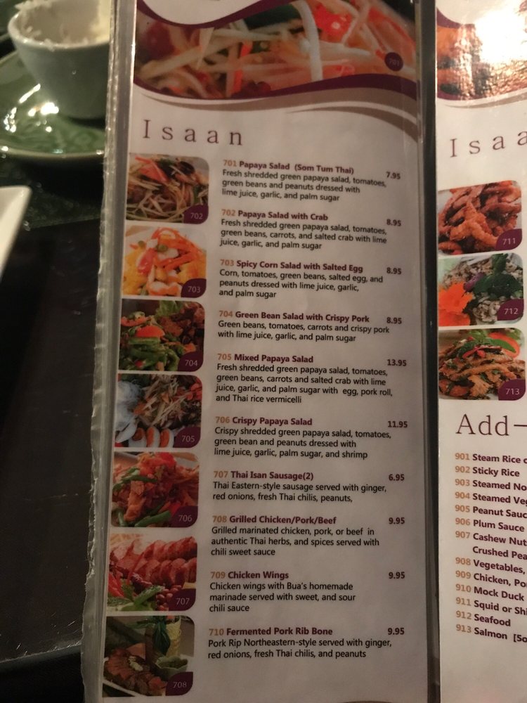 Pork rip northeastern-style served ginger, red onions, fresh Thai chilis, peanuts.